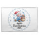 Add festive charm to your holiday table with this Baby’s First Christmas cloth placemat. Featuring an adorable baby boy next to a bag of presents with cheerful blue details, it’s perfect for your child’s place setting during Christmas dinner. Personalize with your baby’s name for a unique keepsake that celebrates his very first holiday season.