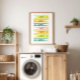 A fun way to brighten up the mundane task of doing laundry, this large poster print can be hung both vertically or horizontally and features a collection of simply illustrated clothes pins in a palette of cheerfully retro bright colors.