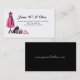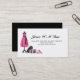 Card with fashion Illustration of a cocktail dress on a seamstress dress form mannequin and matching high heel shoes. Designed for clothing repair, alteration and mending services.