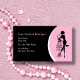 Clothing boutique business cards with image of fashion lady and dress frame along with text space you can personalize. Change the background color and make this your own. Best business cards for a dress shop, clothing, or seamstress.