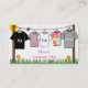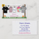 Cute business cards for clothing companies like consignment shops. T-shirts hanging from a clothesline in a grassy field with flowers, a sun, and butterfly is available on the front of the cards and all your companies information is on the back. All business cards can be customized by you. Make sure to edit all text fields on front and back.