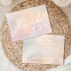 This elegant design features a watercolor sky in beautiful pastel colors, adorned with angelic clouds for a heavenly feel. The white text enhances the soft, serene theme, while the back includes a customizable thank you message.
