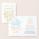 Stylized cloud with hanging beads and golden stars that looks like a baby mobile. The design colors are gender neutral.