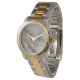 Very good quality watch that looks good whether dressing up or down. The band is sturdy. The watch is rather large so might not work for smaller folks. Recommended as a good gift. Printing is just a touch light but adds a nice touch of personalization.