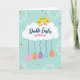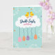 This greeting card features a light aquamarine background with a white cloud shape centered like a soft stage for the message. Inside the cloud, a flowing greeting appears in deep blue with a bright fuchsia accent, placed neatly across the middle. Two small yellow birds sit close together on top of the cloud, their orange beaks angled toward each other as if sharing a quiet, affectionate moment. Below, five egg-shaped ornaments hang from thin dark lines, forming a gentle garland that adds a friendly spring touch 🐰. The eggs are colored in pastel pink, orange, purple, and light blue, decorated with white polka dots and simple stripes. Around the main design, tiny white curls, orange circles, and small green and purple triangles float like confetti, giving the scene a light, social feel 🌷. The overall look stays flat and airy, with the dangling eggs spaced evenly beneath the cloud and the two birds perched right at the top edge.