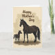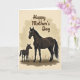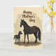 This card shows a tender pastoral scene with two dark-coated horses standing close together, the larger adult angled protectively beside the smaller youngster, and their shared white forehead markings echo a close bond ❤️. The adult’s coat is shaded with soft highlights along the neck and shoulders, while the younger one looks slightly off to the side as if listening, adding a quiet, affectionate tension between them. A creamy beige background sits behind the pair, surrounded by a warm, cloud-like vignette that keeps the focus on their closeness. Near the bottom, a few stylized tufts of deep green-brown grass and a soft shadow under their legs suggest solid ground without crowding the scene. At the top, a flowing dark-brown message is centered above their heads, curving gently with plenty of open space around it. The earthy palette and smooth illustration style keep everything calm and intimate, like a private moment shared in nature 🌼. The text remains high on the card in dark brown, while the horses occupy the middle and the grass forms a low border near the base. The final detail is the warm beige vignette fading inward around the edges, with the darkest tones gathered under their hooves.