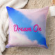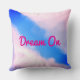 Pillow featuring blue sky with pinkish clouds and "Dream On" text (which you can customize).
