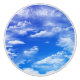 Fluffy white clouds in a bright blue sky design.