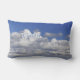 DECORATIVE LUMBAR PILLOW FEATURES WHITE COTTON-BALL LIKE CLOUDS IN A BLUE SKY. THE WHITEST CLOUD HAS CUSTOMIZABLE TEXT THAT READS, "CLOUD 9". DELETE IT OR CHANGE IT AS YOU WISH.