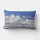 DECORATIVE LUMBAR PILLOW FEATURES WHITE COTTON-BALL LIKE CLOUDS IN A BLUE SKY. THE WHITEST CLOUD HAS CUSTOMIZABLE TEXT THAT READS, "CLOUD 9". DELETE IT OR CHANGE IT AS YOU WISH.