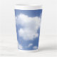 White fluffy clouds are scattered across a bright blue sky. The image conveys a sense of peace and openness.