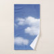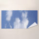 White fluffy clouds are scattered across a bright blue sky. The image conveys a sense of peace and openness.