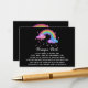 * A Sweet Cute Colorful Fun Whimsical Pastel Watercolor RAINBOW WITH WATERCOLOR CLOUDS and WATERCOLOR RAIN DROPS Rain Baby Boy or Baby Girl Gender Neutral BRING A BOOK enclosure card. The background color is BLACK which really make the design elements pop like neon. Fun!!!