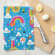 clouds rainbows rain drops hearts pattern kitchen towel