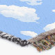 Fluffy white clouds on blue sky seamless design illustration.