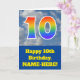 The front of this fun 10th birthday greeting card design features a representation of a cloudy blue sky, along with the number "10" having a multicolored rainbow spectrum like gradient look. The front also features a birthday greeting message, including an editable recipient name. The inside features a customizable birthday greeting message, or could perhaps be cleared and left blank if a message is to be written by hand instead. A customizable birthday card like this might be a fun way to send birthday wishes to somebody who is celebrating their tenth birthday. [~Z0000370]