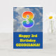 The front of this fun 3rd birthday greeting card design features a cloudy blue sky depiction, along with the number "3" having a multicolored rainbow spectrum like gradient pattern. The front also features a birthday greeting message, including a custom recipient name. The inside features a custom birthday greeting message, or could perhaps be cleared and left blank if a message is to be written by hand instead. A customizable birthday card like this might be a fun way to send a message in celebration of somebody’s third birthday. [~Z0000370]
