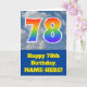 Cloudy Blue Sky, Rainbow Pattern "78" Birthday # Card