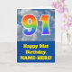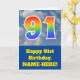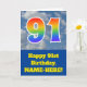 Cloudy Blue Sky, Rainbow Pattern "91" Birthday # Card