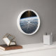 This clock does not light up. The illumination effect is simulated by the artwork.