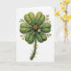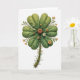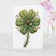 Designed with a richly detailed four-leaf clover as the main focus, this St. Patrick’s Day card sits on a bright white background that makes the greens feel fresh and inviting 💚. The clover’s four rounded leaves are plump and gently shaded, with fine veins that give them a soft, sculpted look. Nestled at the center is a reddish-brown bloom, and thin tendrils and sprigs curl outward like they’re reaching toward each other in a quiet, affectionate way ☘️. Small flowers in soft orange and crisp white are scattered across the leaves, like little shared moments tucked into the greenery. Along the lower portion, the stem runs downward and is wrapped with tiny foliage and miniature floral accents that add texture and depth. The greeting text appears above the clover in green lettering, with a smaller line below in a lighter green, both neatly centered. Soft, diffused lighting highlights velvety gradients on the leaves and the delicate blossoms clustered around the stem.