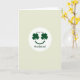 This card features a pale, sage-leaning green background with a white circle centered like a spotlight. Inside the circle, a simple smiling face is formed with two emerald four-leaf clovers as eyes, giving the “look” a sweet, lucky charm ☘️. A curved dark-green line beneath them makes a gentle smile, like it’s quietly grinning at someone it adores 💚. Above the circle, the words “Love You” appear in dark green, placed near the top and spaced to feel airy. Below the circle, “Husband” sits in matching dark green, centered and balanced with the text above. The limited palette of soft green, white, and rich green keeps the scene calm while the clover eyes add a romantic wink. The clovers are angled slightly outward, with each leaf clearly defined against the white circle.