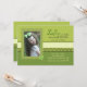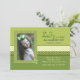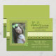 A medley of shades of green, stripes and polkadots are paired with a frame of clovers or shamrocks to create this festive St. Patrick's Day photo invitation.