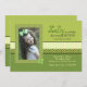 A medley of shades of green, stripes and polkadots are paired with a frame of clovers or shamrocks to create this festive St. Patrick's Day photo invitation.