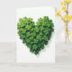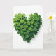 This card shows a heart shape made from many three-leaf clovers, gathered tightly together at the center of a bright white background. The clovers range from light green to deeper emerald, and the mix of shades makes the heart look full and alive 💚. The leaves fit together like a soft mosaic, and the rounded edges of the heart feel like a gentle embrace, hinting at close friendship or a quiet romance. Light falls evenly across the design, catching tiny curves in the leaflets and giving the greens a fresh, springtime look ☘️. Along the outer edge of the heart, faint shadows add depth, as if the clovers are resting just above the paper. The greeting text sits above the heart in a medium green color, with a smaller line placed below it in a lighter green. The background stays pure white, and the clover heart remains the only large image, with soft shadowing most noticeable along the lower right curve.