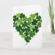 This St. Patrick's Day card features an overhead view of a heart shape formed from many clover leaves on a bright white background, with the leaves tucked closely together like two friends leaning in for a quiet photo. The clovers overlap in a careful, natural way, and a few thin stems peek out to keep the shape feeling organic rather than stiff. Light falls evenly across the page, giving the greens a soft range from pale lime to deep emerald that adds depth without looking busy. The white space around the heart stays open and airy, making the clover heart feel like the clear focus of the scene. A small line of greeting text sits near the top in green, with a second, shorter line placed near the bottom in a lighter green to balance the layout 💚. The gentle shadows between leaves make the heart look slightly raised, as if the clovers were just placed down moments ago ☘️. The final detail is the crisp edge of the clover heart, where tiny leaf tips and slender stems create a neat outline against the white field.