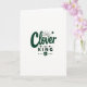 This card features a stark white background with the phrase “Clover King” centered in rich emerald green, giving the design a fresh St. Patrick’s Day look 💚. “Clover” sits at the top in flowing, cursive-style lettering, and a small starburst sparkles just above the “v” like a tiny celebratory wink ☘️. Just below, the word “our” appears smaller, acting like a gentle link between the two main words, with tiny hearts and dots nearby that suggest a sweet, close bond. “KING” anchors the lower portion in large uppercase sans-serif letters, adding a steady, confident feel beneath the softer word above. The contrast between the smooth “Clover” and the strong “KING” creates a romantic, supportive pairing, like one voice leaning in and the other standing tall. At the bottom, a four-leaf clover icon finishes the layout, with a dotted trail on either side that keeps the eye moving across the design. The entire composition stays in deep green ink against open white space, with the clover symbol centered under “KING” and the dots extending outward in a neat line.