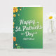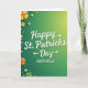 Designed with a glowing green gradient background that shifts from deep emerald on the left to golden-green on the right, this St. Patrick’s Day card sets a cozy, friendly scene 💚. Centered near the top, the greeting “Happy St. Patricks Day” appears in large white lettering with a soft shadow that helps it stand out. Just below, “NEPHEW” sits in smaller white sans-serif type, aligned beneath the main greeting to keep the layout tidy and easy to read. Along the left edge and sweeping across the bottom, layered clover-like flowers in yellows, oranges, and several greens gather like a cheerful border, as if they’re leaning in close together ☘️. The clustered blooms and rounded shapes create a gentle, companionable feel, like a warm nod shared between family members. Inside the main greeting, small arrow shapes extend from “Happy” and from the final “Day,” while another arrow points left near “Day,” adding a sense of motion across the words. Tiny white and pale-yellow dots are sprinkled around the florals, resembling confetti scattered over the lower-left corner and along the bottom edge.