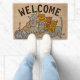 Clowder of Cats Design Coir Door Mat with customizable text and background color.