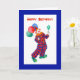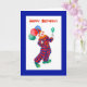 A bright and cheerful Age-specific Birthday Card for a 9 year old, with a clown carrying balloons, from a handpainted illustration by Judy Adamson. Please feel free to change the inside text to your liking.