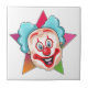 A cute and funny (or creepy and scary!) cartoon painted clown face with a red nose.