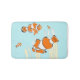 This lovely bath mat is sure to brighten up your bathroom with a touch of the exotic. Large Colourful orange and white Clown Fish, swimming in the weeds, in a very blue sea.
