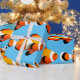 Fun kids fish pattern gift wrapping paper with a Clown Fish tropical fish pattern in bold orange blue and white. Wrap birthday presents, party gifts or party favors.