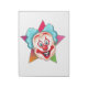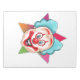 A cute and funny (or creepy and scary!) cartoon painted clown face with a red nose.