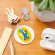 A clown standing on its head with some balloons around it. This design looks really effective on this Keychain