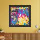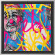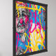 This vibrant and provocative piece of street art features a close-up portrait of a clown, his face painted with traditional red and white makeup. The clown's expression is ambiguous, hinting at both sadness and amusement. The background is a chaotic mix of bold, abstract shapes and lines in bright colors, creating a sense of disorientation and confusion. The overall effect is one of satire and social commentary, suggesting a world that is absurd, unpredictable, and perhaps even a little bit frightening.