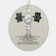 Lightweight, smooth, pure white ornament with nice sheen. Perfect size to be seen from across the room ... and to attract closer inspection! Price was great for ordering enough for the whole family! Clear, bold black design just as requested. Matches the order exactly. Just so nice!