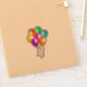 This vinyl sticker with a transparent backing is a cluster of bright festive balloons with matching hanging streamers in pretty colors of purple, yellow, blue, pink green, and orange.