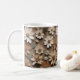 Clustered 3D flowers in earth tones create a striking yet minimalist aesthetic, with each bloom meticulously crafted to stand out. The arrangement blends natural hues seamlessly, adding depth and warmth to its contemporary design.