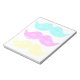 A playful array of stylized facial hair creates a vibrant and whimsical pattern, drawing inspiration from traditional printmaking techniques. The design features overlapping cyan, magenta, and yellow ink effects to produce a rich spectrum of secondary colors, mimicking a classic layered press aesthetic. This clean, graphic arrangement balances a vintage feel with a modern, lighthearted tone, making it a bold focal point for creative professionals or anyone seeking a unique and artistic notepad.