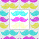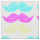 A vibrant array of whimsical mustaches in cyan, magenta, and yellow creates a repeating pattern with a bold, high-energy aesthetic. Drawing inspiration from classic print shop techniques, the design utilizes a spectrum of bright, saturated colors and clean outlines to produce a modern and playful visual rhythm. This professional graphic offers a sophisticated take on a dapper motif, making it an ideal choice for interior designers, crafters, or apparel enthusiasts seeking a cheerful foundation for various sewing projects with this fabric.