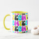 Stylish CMYK Funky Graphic Designer Mug for graphic artists, printers, art students and those working in the advertising, newspapers and magazines industries. Design shows CMYK in funky retro typography in cyan, magenta, yellow and black (key) in an all-over pattern. A little bit different from your average CMYK coffee mug!