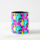 Stylish CMYK Funky Retro Mug for graphic designers, printers and art students. Design shows CMYK in funky retro typography in cyan, magenta, yellow and black (key) in an all-over pattern. A little bit different from your average CMYK coffee mug!