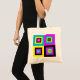 Modern, stylish CMYK monogram tote bag, showing geometric squares pattern in the colors of cyan, magenta, yellow and black (key). At the middle of each small square is a CUSTOMIZABLE MONOGRAM that you can replace with your initial. Ideal for CMYK enthusiasts, graphic designers and the color creatives in your life.