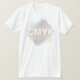 This shirt features the colours Cyan, Magenta, Yellow and Black (K), as they are printed using the angular screen printing process.