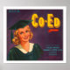 Vintage fruit lable for California Orange and Lemon growers featuring a college girl in cap and gown.